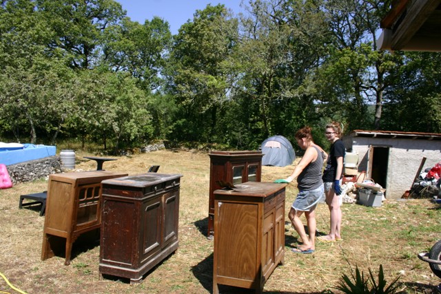 Davy, Demi en ik vertrekken zaterdagavond met een aanhanger vol keuken naar de Bergerie. De gemiddelde snelheid ligt lager gezien de zware belading. Zondagmorgen om 9:30 komen we aan. Na een lekker ontbijtje beginnen we gelijk met de eerste klussen.